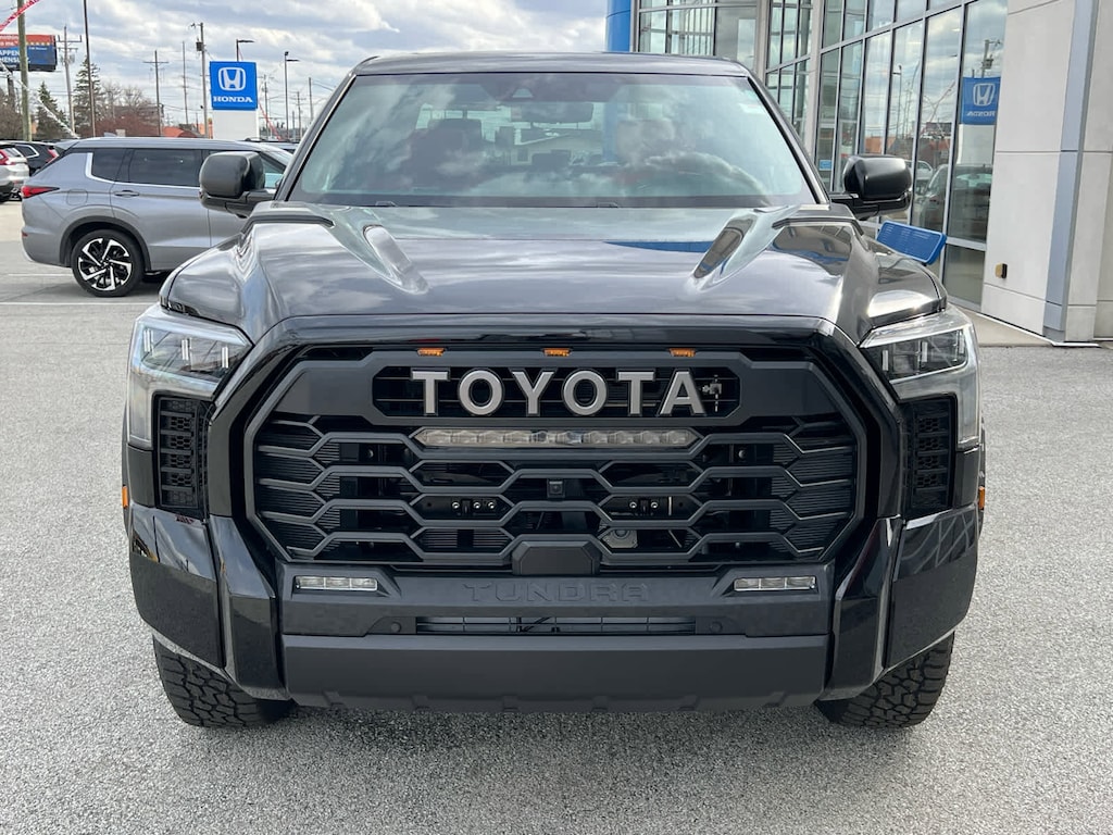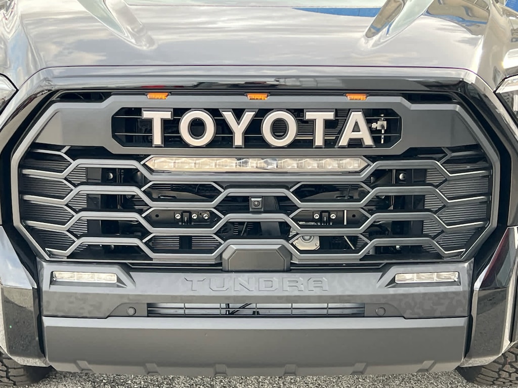 - Black "toyota" heritage grille with integrated light bar, amber marker lights, and color-keyed surround.